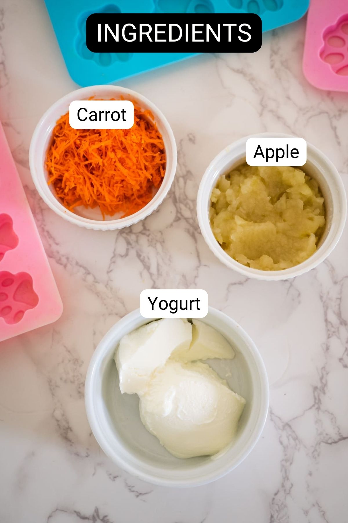 These simple apple carrot dog treats are a refreshing snack for your dog. Made with just three ingredients, they are easy to prepare and provide a cool snack on hot days. Combining the natural sweetness of apples and the crunchy goodness of carrots with the creamy texture of yogurt, these treats provide a delightful snack that dogs love.